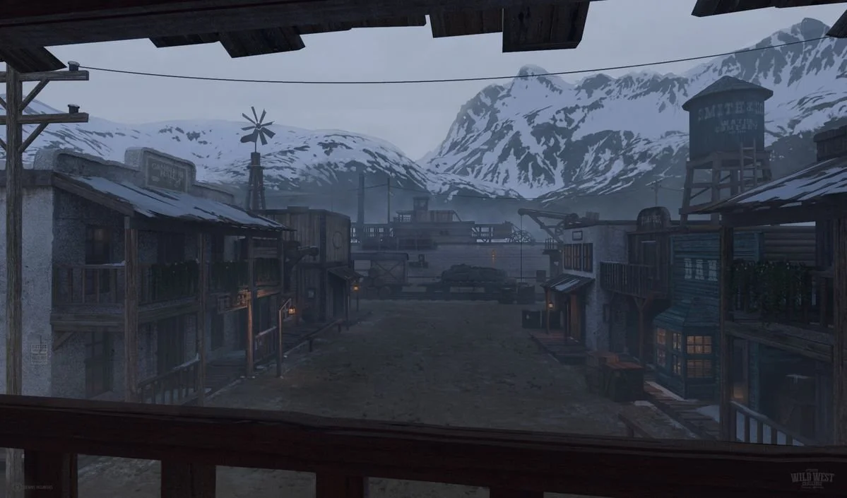 The architecture and technology is set in the late 19th century, mostly. While there are plenty of horse-riding cowboys, kerosene lanterns, and dirt roads, you will also find the occasional 1960s pickup truck, electric lightbulb, and the interior decorating style of the 1970’s.